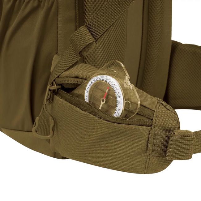 - Окрім основного відділення, двох бічних еластичних кишень, фронтальної кишені та кишені зверху, цей рюкзак має систему кріплень MOLLE для фіксації спорядження, а також він сумісний із питною системою (гідратором).