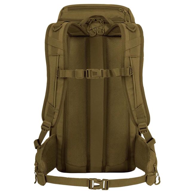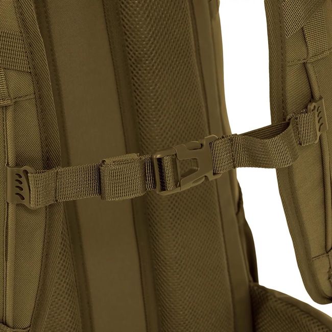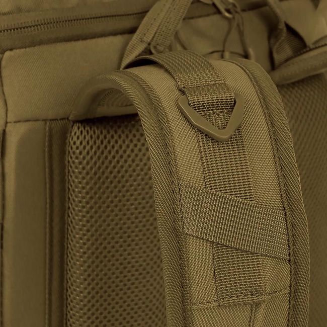 Highlander Eagle 2 Backpack 30L Coyote Tan — місткий і надійний рюкзак для щоденного носіння. Модель виготовлена із міцного водостійкого поліестеру 600D XTP із поліуретановим покриттям, має систему кріплень MOLLE, велике відділення на блискавках для зберігання спорядження в польових умовах, а також фронтальну та дві еластичні бічні кишені. М'яка спинка, компресійні ремені та ручка для перенесення роблять цей рюкзак зручним для користування. Регульовані лямки з м’якими підкладками та регульований поясний ремінь розподіляють навантаження, щоб забезпечити Вам комфорт під час щоденного носіння. Все це гарантує, що даний рюкзак витримає тривалу експлуатацію.