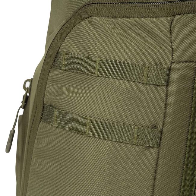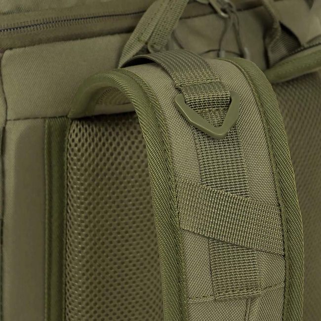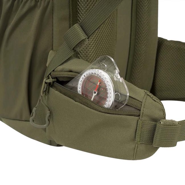 - Окрім основного відділення, двох бічних еластичних кишень, фронтальної кишені та кишені зверху, цей рюкзак має систему кріплень MOLLE для фіксації спорядження, а також він сумісний із питною системою (гідратором).