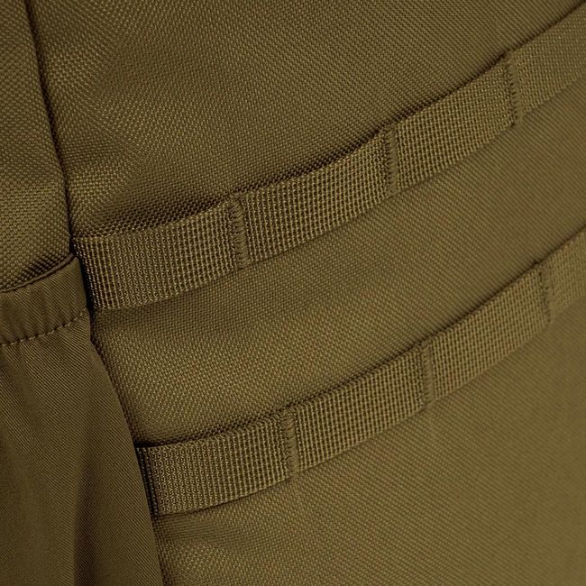 - Окрім великого основного відділення та бічної еластичної кишені, цей рюкзак має систему кріплень MOLLE для фіксації спорядження.