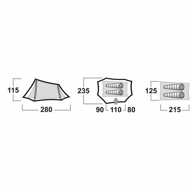 | Каркас | dural poles - ø 8,5 mm, легкі дюралеві кілочки, ремонтний комплект, компресійний мішок |