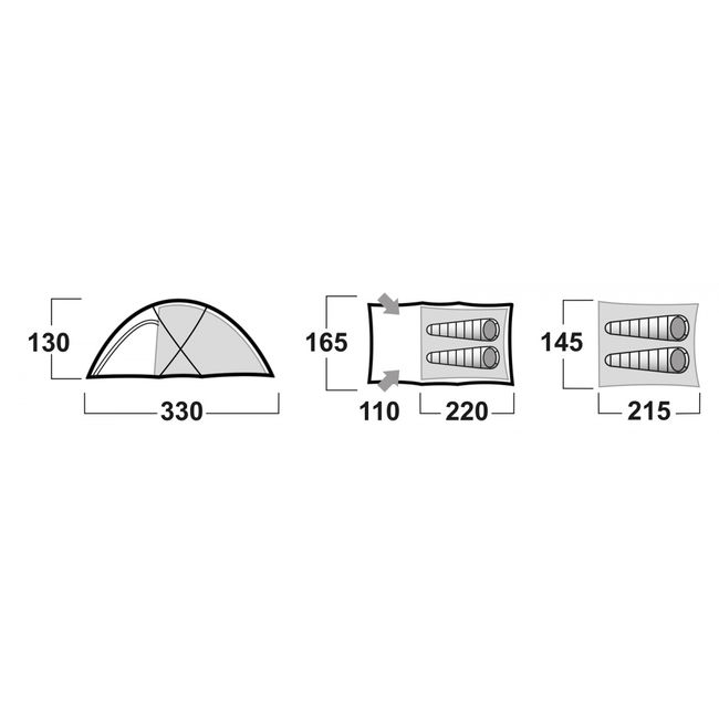| Каркас | Двошаровий намет із зовнішньою конструкцією, дюралюмінієві дуги діаметром 8,5 мм |