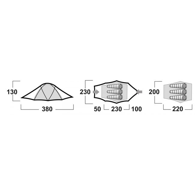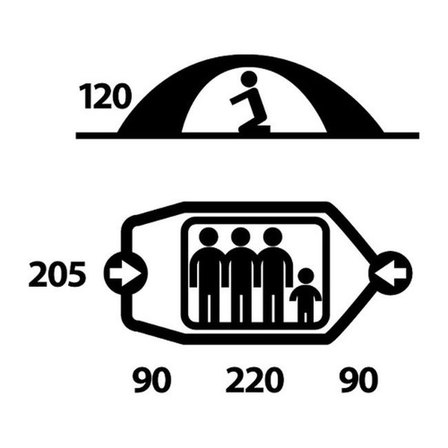 | Каркас | Двошаровий намет із зовнішньою конструкцією, дюралюмінієві дуги діаметром 8,5 мм |