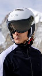 Kask PhotoMR Chrome — Шолом з лінійки Piume з панорамним фотохромним візором та протитуманною лінзою. Оснащений мікрометричною пряжкою, розумною вентиляцією та м'якими ергономічними навушниками.