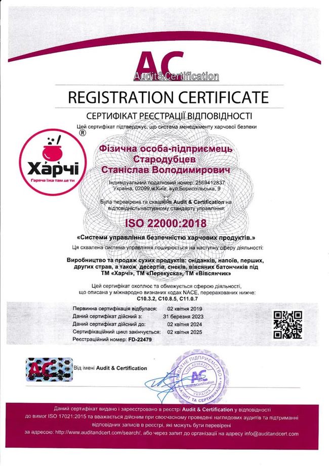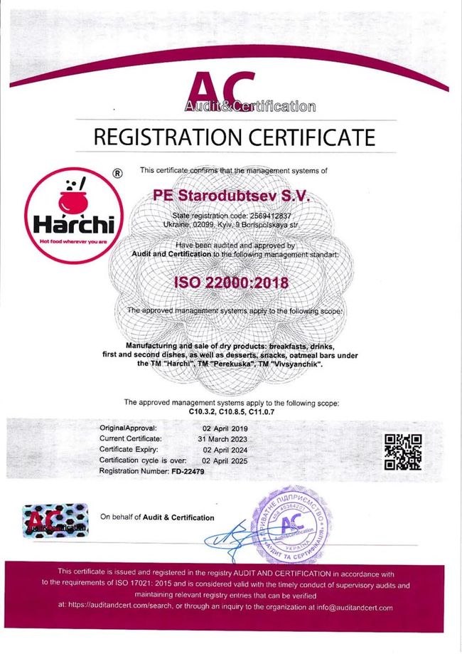 Термін придатності: 1 (один) рік – без поглинача кисню, 3 (три) роки – з кисневим поглиначем. Дата виробництва та кінцева дата споживання – вказані на упаковці.
