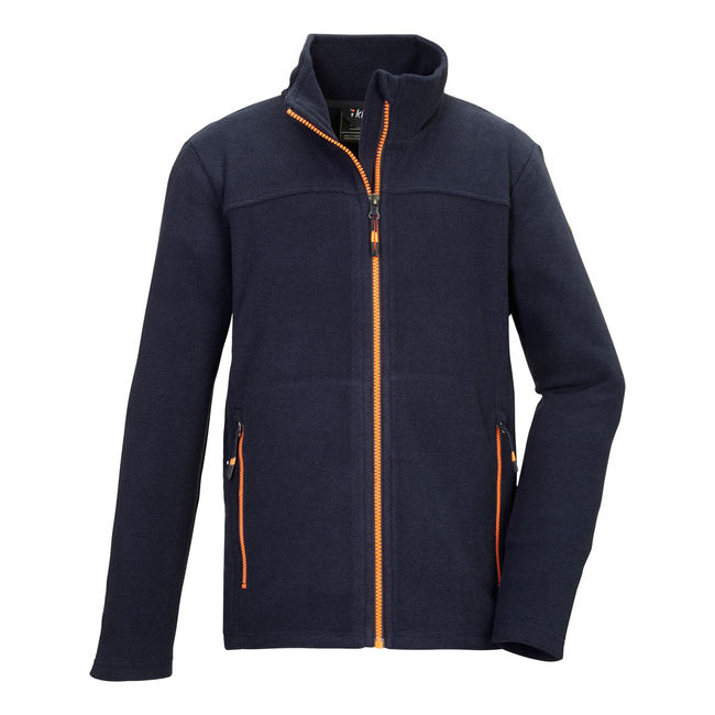 Killtec Kow 362 Bys Flc Jkt — Дитяча флісова куртка з коміром-стійкою від killtec - ідеальний супутник для холодної пори року. М'який та еластичний матеріал зберігає тепло та комфорт. Передня застібка-блискавка має захист для підборіддя, щоб запобігти перетисканню шкіри. Дві бічні кишені можна закрити на блискавку, щоб нічого не загубилося.