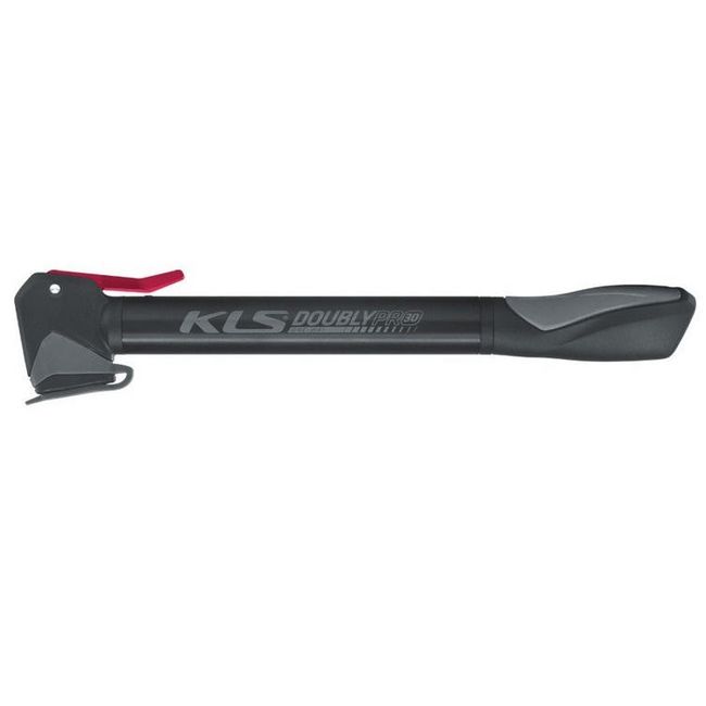 KLS Doubly 30 - Компактний та легкий міні насос. Призначений для використання в "польових" умовах. Виготовлений з анодованого алюмінію. Універсальний клапан дозволяє використовувати помпу з ніпелями типу - AV (Schraeder) / FV (Presta) / DV (Dunlop). Має ергономічну Т-подібну ручку, для кращої фіксації в руці. В комплекті кріплення на раму.