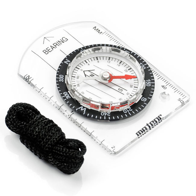- Компас для визначення сторін світу і визначення азимуту на карті.