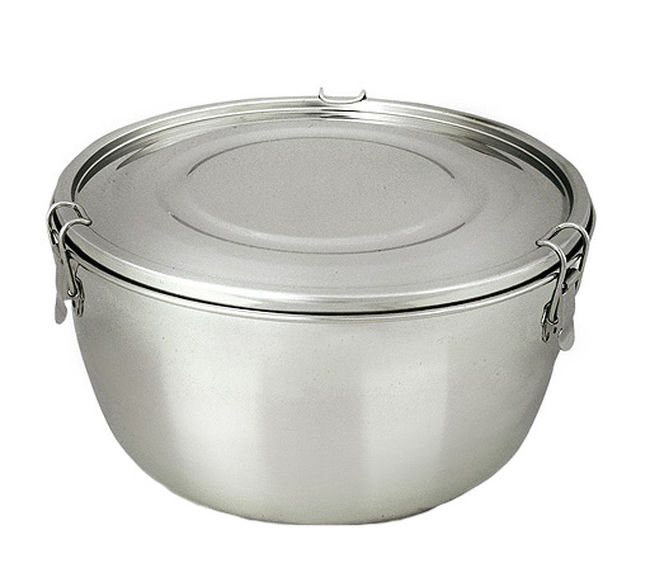Контейнер з нержавіючої сталі для зберігання їжі. Контейнер оснащений щільною кришкою і трьома затискачами, завдяки яким вміст не витече і не забруднить сумку. Посуд з високоякісної нержавіючої сталі забезпечує більш швидке готування страв, легко і якісно чиститься і має привабливий зовнішній вигляд навіть після тривалої експлуатації. Такий посуд особливо міцний і довговічний.