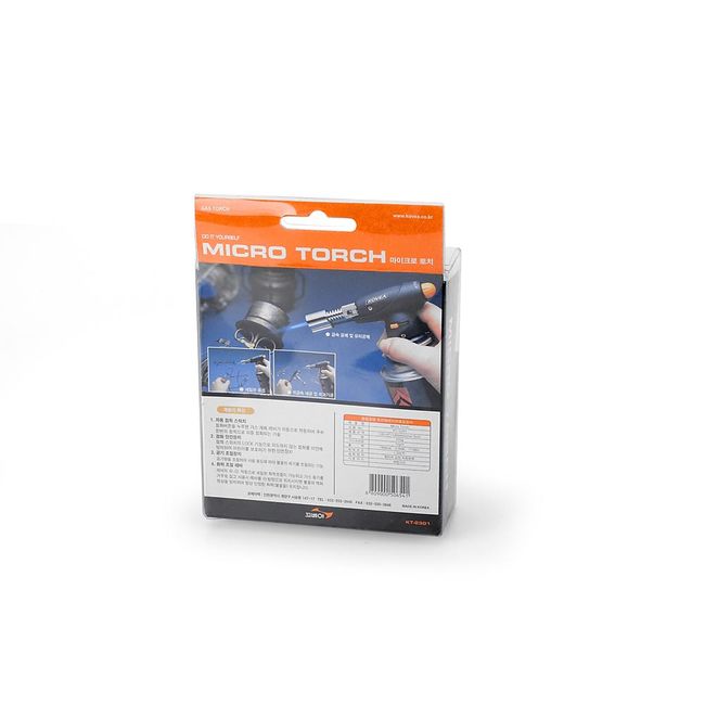 Kovea Micro Torch — Газовий різак для точних та тонких робіт. Високо цінується серед ювелірів. Обладнаний п'єзопідпалом. Температура полум'я може сягати 1300 градусів. KT-2301 Micro Torch не обладнаний системою попереднього розігріву газу та вільне обертання протипоказано. Газовий різак розрахований для роботи з високим цанговим газовим балоном Kovea KGF-0220, не підходить для роботи з балонами різьбового стандарту, оскільки не передбачено встановлення перехідника.