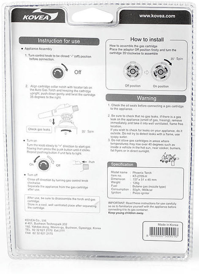 Kovea Phoenix — компактний, легкий газовий різак , ефективний у використанні для різних технічних робіт. Завдяки властивості попереднього підігріву різак можна використовувати і на сильному морозі. Дану модель можна використовувати не тільки в монтажних роботах, а і в якості розпалювання деревного вугілля для барбекю. Підключення газового різака до балону не потребує додаткових зусиль. Дана модель працює від цангового балону.