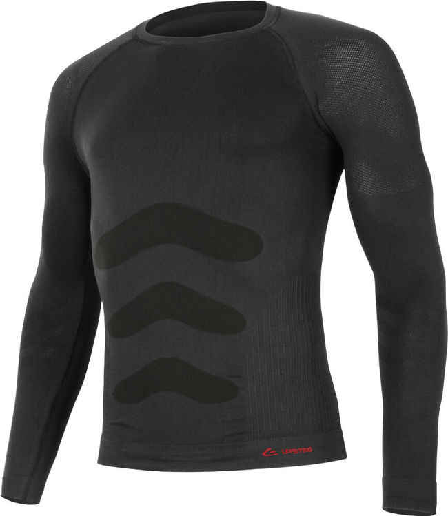 Lasting Apol Black - Чоловіча термофутболка із довгим рукавом, виготовлена із синтетичної тканини. Відмінно підійде для занять у тренажерному залі чи бігу. Швидко виводить вологу та зберігає тепло під час активного заняття спортом або іншою рухомою діяльністю. Футболка має анатомічно розташовані зони у місцях підвищеної пітливості та мінімальну кількість швів для максимального комфорту.