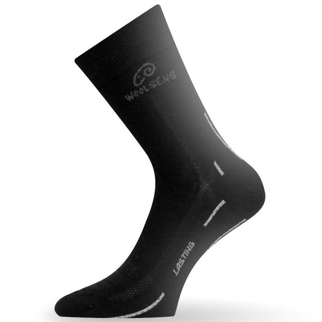 Lasting WLS 901 Black — Шкарпетки для активного відпочинку. Виготовлені із суміші шерсті Merino та штучних волокон. Lasting WLS здатні відводити вологу, а також мають антибактеріальні властивості. Розробники використали тонкий шов типу Россо, який не натирає. Сітчаста область на підйомі забезпечує кращу циркуляцію повітря. Зони носка та п`ятки посилені для кращої зносостійкості шкарпеток.