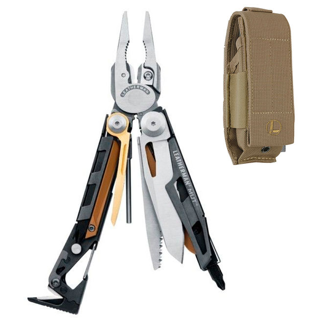 Конструкція мультитула Leatherman MUT BLACK налічує 18 інструментів, у складі яких є як стандартні, так і спеціальні елементи: окрім прямого призначення можливе використання молотка для зрушення у разі заклинювання затвора рушниці AR 15 патроном.