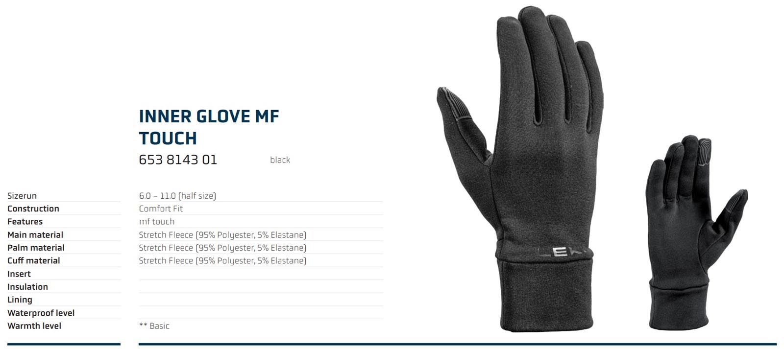 Leki Inner Glove mf touch — Зручна підкладка рукавичок виготовлена з еластичного флісу, що забезпечує вільний рух. Внутрішня рукавичка MF Touch оснащена інтелектуальною технологією LEKI MF Touch на кінчиках великого та вказівного пальців, що дозволяє користуватися смартфоном, не знімаючи рукавичок.