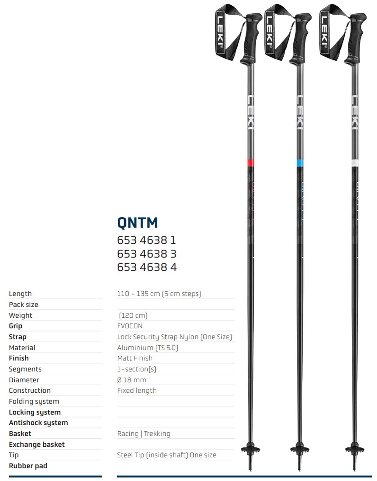 Як і всі гірськолижні палиці LEKI, QNTM також має вбудований позитивний кут +8 градусів, що робить використання палиці природним та інтуїтивним. Ремінець можна регулювати, щоб ідеально прилягати до рук.