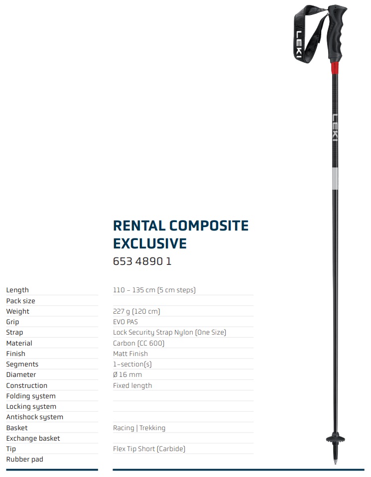 Leki Rental Composite Exclusive — це найкращий вибір для тих, хто шукає щось грандіозне в компактному корпусі. Ремінець легко регулюється відповідно до індивідуальних уподобань, забезпечуючи комфортну та персоналізовану посадку. Відчуйте найкраще поєднання легкої конструкції та чудової продуктивності з лижними палицями.