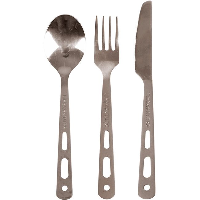 Lifeventure Titanium – ультралегкий і екстремально міцний набір столових приладів з титанового сплаву. Підійде спортсменам і мандрівникам, для яких кожен грам зайвої ваги має значення. Набір виготовлений з легкого титанового сплаву, міцного як сталь, але наполовину менше за вагою.