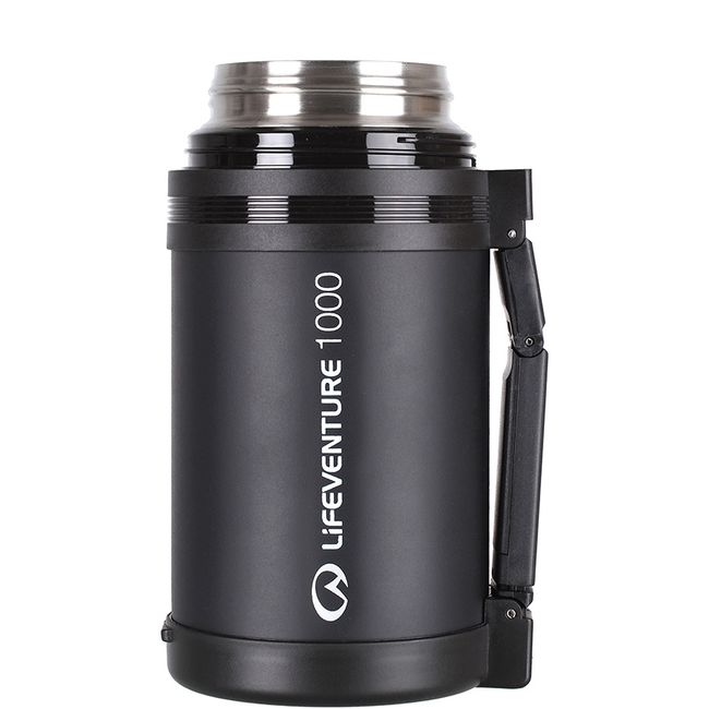 Lifeventure Wide Mouth 1.0 L - вакуумний термос з широким горлом для супів та інших видів рідкої їжі. Забезпечений складаною ручкою і знімним наплічним ременем. Зберігає температуру гарячих продуктів протягом восьми годин, холодних – протягом 12.