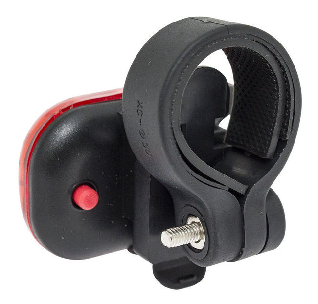 Задній світлодіодний ліхтар. Максимально видимий до 100 метрів задній ліхтар 3 LED (червоне світло) працює в 3 режимах освітлення. В комплекті кріплення. Ліхтар живиться від двох батарейок ААА (батареї в комплекті).