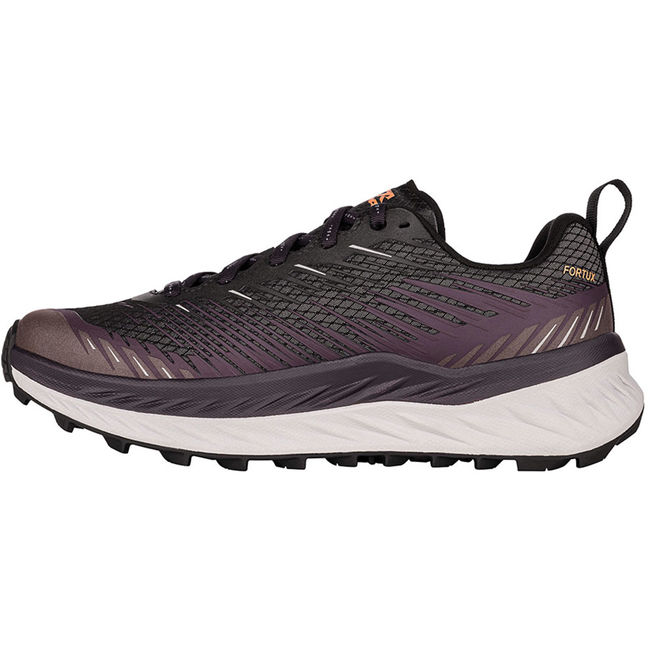 Lowa Fortux W – легкі жіночі кросівки для трейлового бігу на наддовгі дистанції. Модель виконана з урахуванням анатомії жіночої стопи, щоб забезпечити ідеальну посадку. Верх виготовлений із синтетичного матеріалу з поліуретановим покриттям REPTEX® SPORT, що робить взуття більш міцним. Матеріал запобігає пошкодженню від гострого каміння і при цьому важить легше, ніж гума, що важливо при тривалому бігу. Проміжна підошва потрійної густини з технологією DYNEVA забезпечує амортизацію по всій довжині кросівка. Два компоненти зовнішньої оболонки створюють додаткову амортизацію в задній частині стопи, а також пряму віддачу енергії в середній та передній частинах стопи. Вбудоване карбонове посилення додатково мінімізує втрату енергії та запобігає попаданню гострих предметів у підошву. Цілісний верх і полегшений язичок мінімізують зайві шви і, відповідно, ризик виникнення точок тертя. Накладки в області манжети та п'яти підтримують оптимальний баланс комфорту та гнучкості. Підошва LOWA® TRAC® із злегка повернутими шипами створює необхідне зчеплення з поверхнею на будь-якому типі рельєфу при швидкому русі. Двоспрямовані шипи протектора забезпечують як швидкий розгін, так і ефективне гальмування.