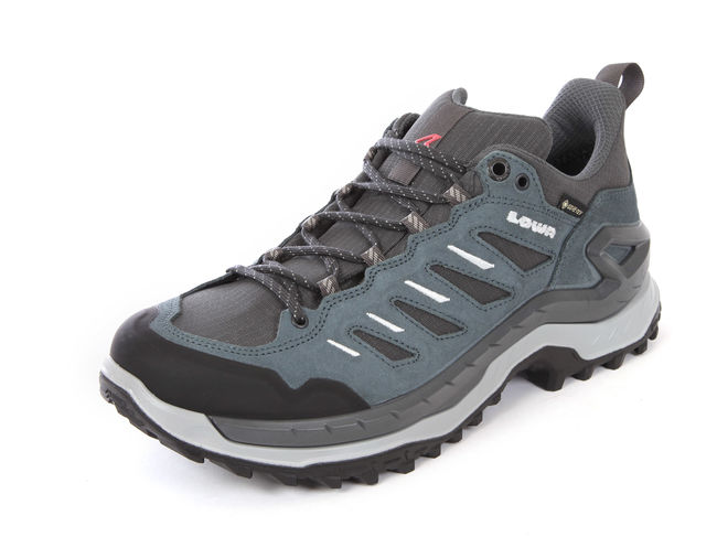 Lowa Innovo GTX LO — чоловічі кросівки для хайкінгу та активного відпочинку на природі. Завдяки різноспрямованому малюнку протектора та збільшеній площі контакту, підошва LOWA® TERRA TRAC® забезпечує надійне зчеплення та стійкість на різних типах поверхні. Проміжна підошва LOWA DynaPU® ефективно поглинає ударні навантаження під час ходіння та зберігає свої амортизувальні властивості навіть після тривалого використання. Конструкція підошви з технологією LOWA MONOWRAP® сприяє ефективному розподілу навантаження і зниженню ударних навантажень на стопу, забезпечуючи комфорт під час ходіння нерівними поверхнями. Мембрана Gore-Tex® зберігає ноги сухими, забезпечуючи водонепроникність і вітрозахист.