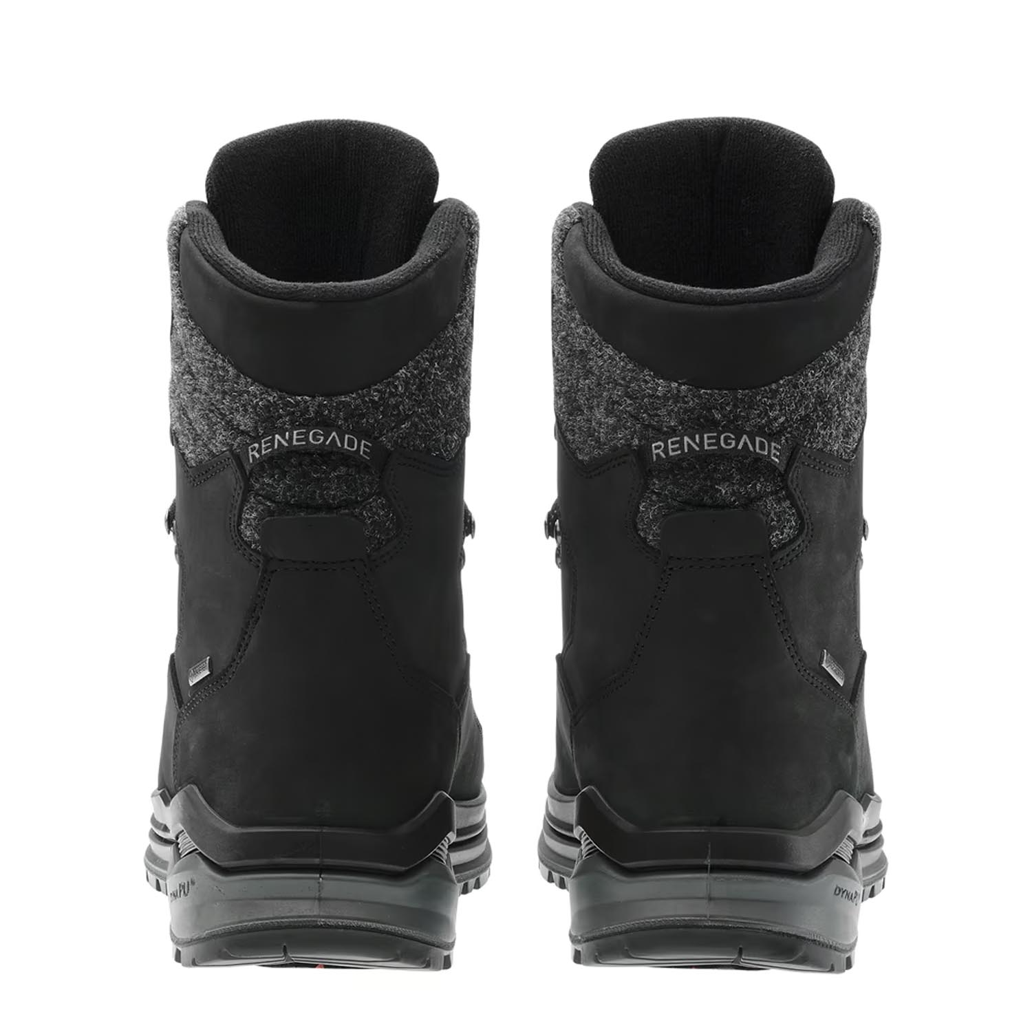 LOWA Renegade Evo Ice 2 GTX – чоловічі зимові черевики з міцного нубуку з утепленою мембраною GORE-TEX, що забезпечує захист від вологи і комфорт при низьких температурах. Амортизуюча проміжна підошва LOWA DynaPU® і стабілізуюча конструкція SUPPORT FRAME зменшують навантаження на стопу при тривалій ходьбі. Підошва VIBRAM ARCTIC GRIP TRAC® гарантує впевнене зчеплення на засніжених і обмерзлих поверхнях. Модель підходить для повсякденного використання взимку, активного відпочинку і коротких зимових походів.