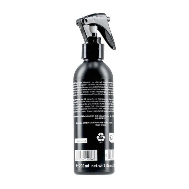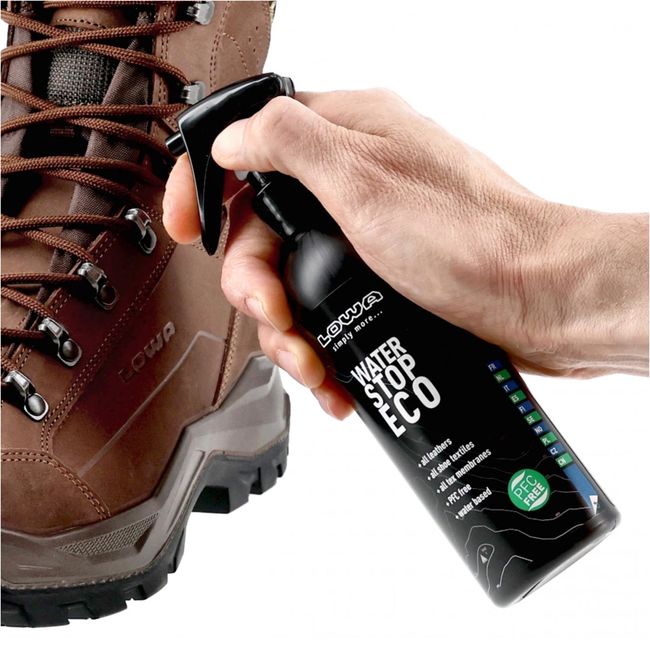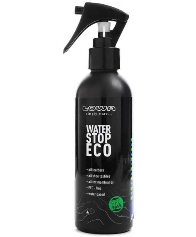 Lowa Water Stop Eco 200ml – спрей на водній основі для взуття для надання водовідштовхувальних властивостей взуттю зі шкіри та комбінованих матеріалів, а також взуття з мембранними матеріалами.