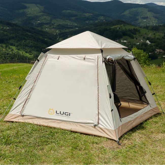 Lugi LU003BE — Двомісний намет з автоматичним каркасом - відмінний варіант для походів та кемпінгу. Простий принцип установки не вимагає особливих зусиль, а порівняно невелика вага дає можливість використовувати намет для пішого туризму чи сімейного відпочинку. Серед переваг, які вигідно відрізняють такий намет від багатьох інших - вентиляція 360°. На трьох бокових стінках розташовані великі вікна з москітними сітками, які забезпечують відмінну циркуляцію повітря. Вхід до намету також продубльований москітною сіткою, а тент не тільки забезпечує захист від дощу та вітру, але й дає можливість організувати повноцінну обідню зону або зону відпочинку, приховану від сонця.
