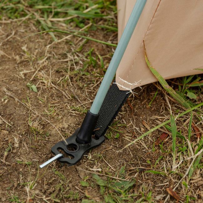 - Вбийте ґрунтові кілочки по периметру намету і натягніть вітрозахисні шнури.
