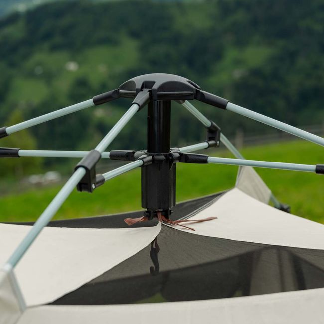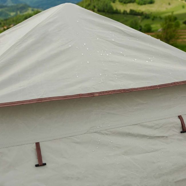 Основна особливість намету – двошарова конструкція. Верхній шар виготовлений з Оксфорду 210D з покриттям PU, що забезпечує високу водонепроникність і блокує ультрафіолет. Завдяки цьому в наметі зберігається комфортна температура навіть під прямим сонячним промінням. Внутрішній шар намету виконаний з Оксфорду 210D, який має відмінну повітропроникність у поєднанні з високою вологостійкістю.