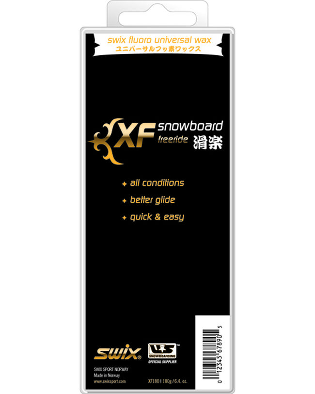 XF високоякісна водовідштовхуюча фторовмістка тверда мазь. Для будь-якого типу снігу. Натер, розтер і вперед! Альтернатива: вплав праскою, обробити скребком, відполірувати щіткою. Містить фтор. Економічний розмір.