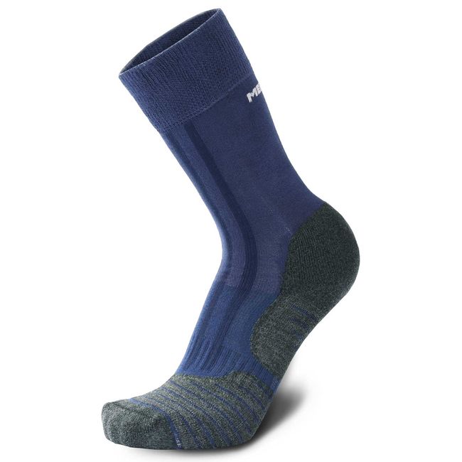 Meindl MT4 Man Blue Grey — це легкі двошарові трекінгові шкарпетки. Спеціальна пряжа BioCeramic з внутрішньої сторони поєднується з вентиляційними каналами й таким чином забезпечує оптимальний клімат у взутті. Зовнішня нитка вбирає вологу зі стопи. Посилена п’ята і носок захищають вашу шкіру від хворобливого натирання та пухирів. Анатомічна підкладка забезпечує оптимальну підтримку у взутті. М'який нековзкий пояс підвищує комфорт.