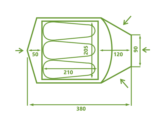 - Легкий алюмінієвий каркас - надійний та легкий каркас із алюмінію робить намет довговічним та зручним у використанні.