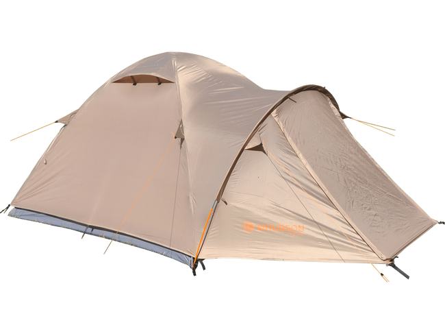 Mousson Atlant 4 Sand Легкий та ергономічний намет розроблений таким чином, аби Вам було якомога зручніше користуватись ним, встановлювати та транспортувати. В наметі передбачено два входи, тож Ви зможете увійти в нього як зі сторони спального відділу, так і зі сторони тамбуру. У просторому тамбурі Ви не лише зможете розмістити свої речі, а й влаштувати «польову кухню».