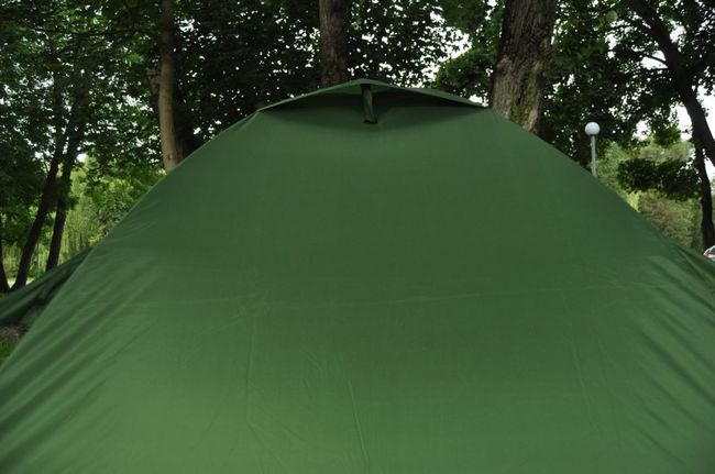 - Зовнішній тент - Polyester 2000 mm - зовнішній тент виготовлений із Polyester - тканини із поліефірного волокна, що є надзвичайно легкою і при цьому володіє високою міцністю, практично не розтягується при намоканні та не псується під дією ультрафіолету, а також володіє коефіцієнтом водонепроникності 2000 мм. водного стовпця.