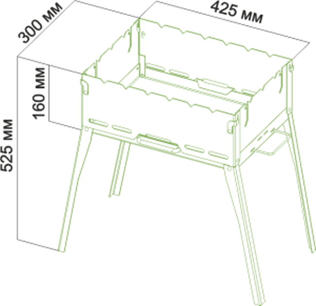В мангалі передбачені прорізи під решітку-гриль, які дають змогу фіксувати її на двох рівнях, що значно розширить Ваші можливості в виборі продуктів та приготуванні страв. Окрім того, Ви зможете використовувати мангал не лише за прямим призначенням – для Вас він з легкістю перетвориться на зручний столик, що неодмінно зробить відпочинок іще приємнішим та комфортнішим.