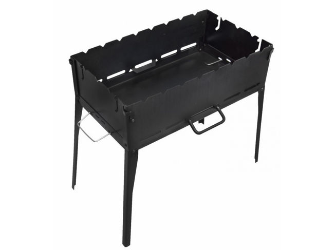 У комплекті Ви також отримаєте 8 шампурів із харчової нержавіючої сталі марки AISI 304 товщиною 1,5 мм. Оригінальна V-подібна форма шампурів дозволяє їм не прогинатися на відміну від звичайних плоских шампурів, що не обмежить Вас у виборі розмірів продуктів для приготування. В мангалі також передбачені прорізи під решітку-гриль, які дають змогу фіксувати її на двох рівнях, що значно розширить Ваші можливості в виборі продуктів та приготуванні страв. На бокових стінках мангалу присутні насічки для трьох шампурів більшої довжини.