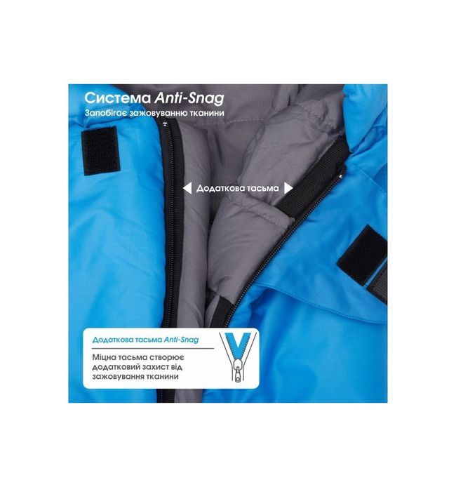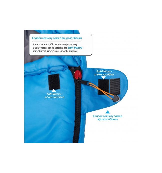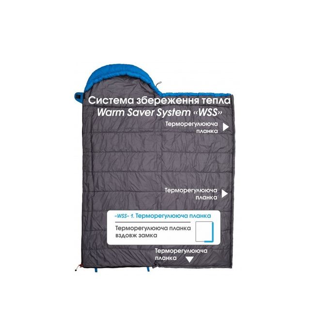 - Терморегулююча планка вздовж замка, котра допомагає утримати тепле повітря всередині спальника та не допускає потрапляння холодного повітря ззовні
