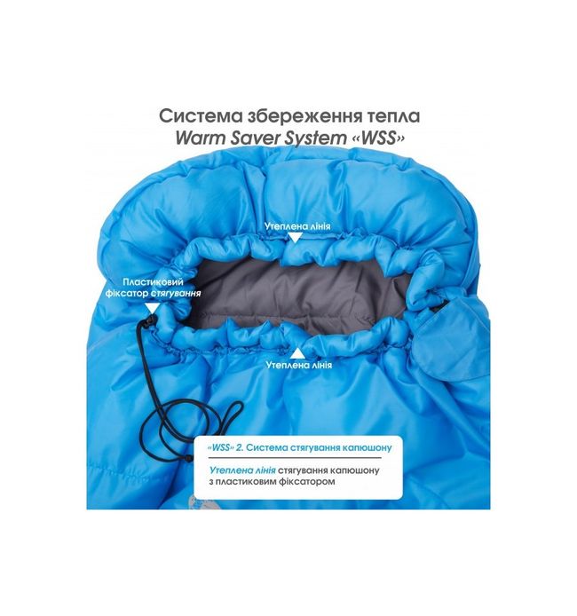 - Система стягування, що максимально зберігає тепло (утеплений комір зі стяжкою та застібкою велкро для максимального утеплення; утеплена лінія стягування капюшону; пластиковий фіксатор закріплений в найбільш зручному місці стягування)