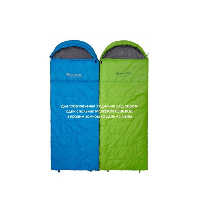 Ми використали два шари наповнювача IsoHole 8S щільністю 150 гр/м² кожен. Один шар наповнювача пришитий до зовнішнього матеріалу, а інший до внутрішнього зі зміщенням швів для максимального утримання тепла. Зовнішні S-подібні та внутрішні горизонтальні шви не співпадають між собою і тому в жодному випадку не утворять так званих «містків холоду». Зовнішній технологічний шар поліестеру 190Т з водовідштовхуючим мембранним просоченням не пропустить всередину спальника вологу і при тому залишається «дихаючим» матеріалом. Внутрішній матеріал поліестер понджі 190Т м’який і приємний на дотик та володіє низькою гігроскопічністю, що так важливо в сиру погоду. Два спальні мішки можуть об’єднуватись в єдиний простір, де ночуватимуть двоє осіб, що гарантує надійне збереження тепла всередині. Для забезпечення з’єднання вам слід обрати один спальник MOUSSON TOUR з правим замком та один – з лівим.
