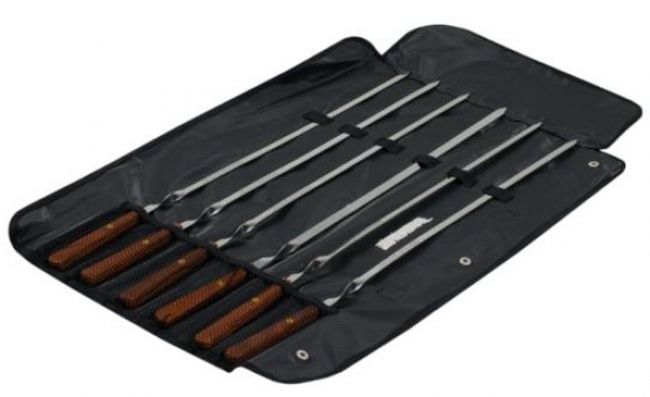 Набір шомпурів (6шт) з нержавіючої сталі з дерев'яними ручками та в компактному чохлі.
