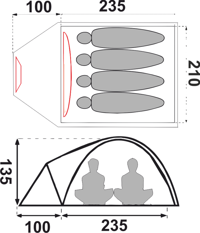 | Зовнішній тент | 185T поліестер Ripstop PU, 3 000 мм H2O, проклеєні шви |