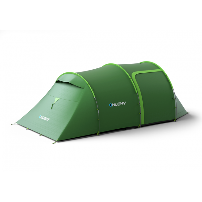 Husky Bender 3 Green - це суміш туристичного та кемпінгового наметів. Спальня в задній частині намету досить простора для трьох мандрівників. Просторий тамбур можна використовувати для зберігання багажу або в якості притулку під час поганої погоди. У наметі 2 входи. Пластикові вікна в передній частині намету, щоб забезпечити достатній доступ світла. Тунельна конструкція дуже просто встановлюється і забезпечує стійкість.