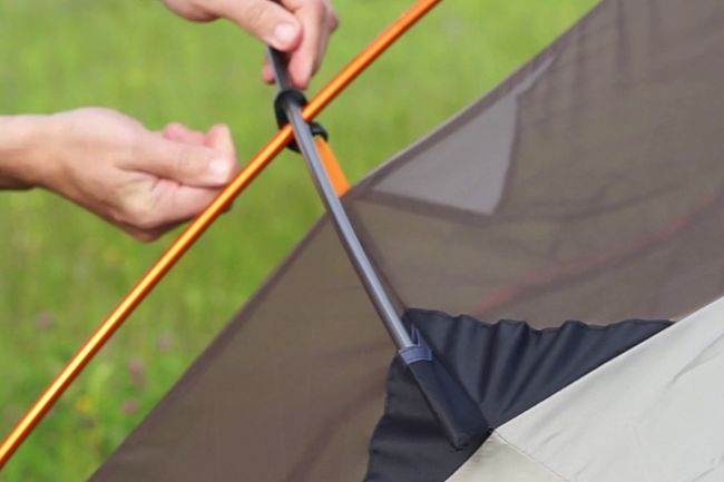 Існує два способи кріплення тенту та внутрішнього тенту. Варіант перший: каркас може бути ззовні тенту і кріпитись до нього через кишені, внутрішній тент підвішується до намету. Цей варіант встановлення легшим, намет можна встановлювати під дощем чи сильним вітром при цьому внутрішній намет не промокає. Другий варіант: каркас встановлюється в кишені, або вішається на гачки внутрішнього намету, а тент натягується зовні. Кількість відтяжок, які потрібні для підвищення вітростійкості намету: більше краще, коли кожна грань має три відтяжки (дві з яких суміжні).