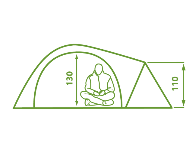Поліуретанове просочення тканини зовнішнього тенту значно підвищує коефіцієнт водонепроникності намету, який становить 3000 мм водяного стовпця, та разом з проклеєними швами робить намет придатним для використання в умовах багатоденного дощу та вітру. Дихаюча тканина внутрішнього намету забезпечить Вам постійний притік свіжого повітря.