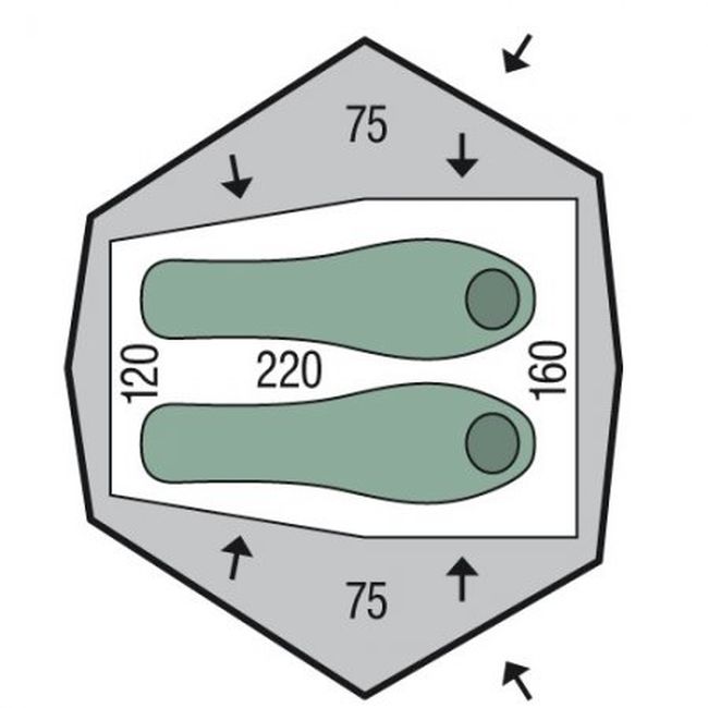 | Зовнішній тент | Nylon RipStop, PU coating 4 000 mm H2O, UV protection |