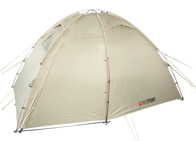 Red Point Kimeriya 4 - Найвища з кемпінгових наметів Red Point, куполоподібний намет з 3 дугами, в якій може в повний зріст стояти людина високого зросту. Kimeriya 4 має великий просторий тамбур, вільно вміщає складаний кемпінговий столик і кілька стільців. У тамбур ведуть два бічних входи - а також оглядове вікно з прозорою вставкою. Для оптимальної вентиляції дана модель оснащена 3 великими вентиляційними вікнами, розміщеними у верхній частині «купола». Торцева стіна тамбура обладнана оглядовим вікном з прозорою вставкою яке закривається.