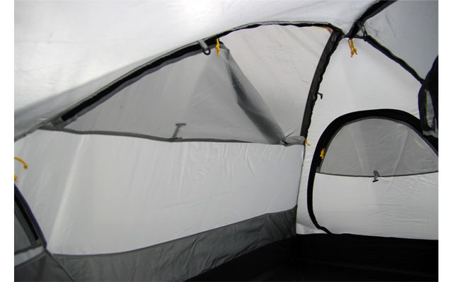 Два входи дають можливість прямого доступу в спальню. Додаткові бічні вентиляційні рукави і стандартна вентиляція над двома входами забезпечують ідеальне провітрювання намету. Складна захисна "спідниця" перешкоджає можливому попаданню пилу, снігу тощо. Встановлення намету швидке і легке.