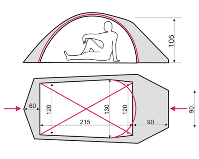 Просторий і практичний двомісний намет, що використовується протягом всього року. Стійка конструкція з трьох дуг підходить для екстремальних подорожей. Великий і зручний передній тамбур, в якому можна розмістити багаж або туристичну кухню.